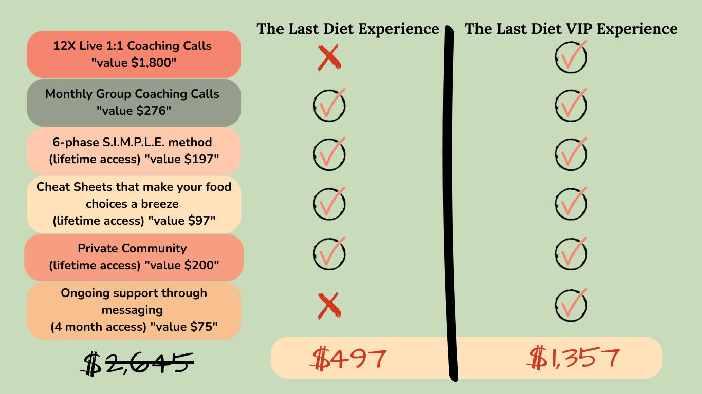 The Last Diet Experience is a guided journey to a healthier more fulfilling lifestyle that naturally results in a healthy weight, which is why it feels so effortless to maintain. Not a course, not a restriction plan, not a set of rules of eat less and move more.